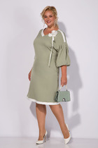 Платье-рубашка прямого силуэта, застежка центральная на петли и пуговицы. Горловина округлой формы с воротником - стойкой. Плечо чуть спущено. Рукав втачной двух шовный, низ рукава оформлен разрезом на манжете с двумя пуговицами.