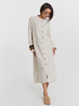По линии горловины и разреза платье декорировано звеньями металлической цепи  золотистого цвета.