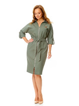 Платье женское полуприлегающего силуэта, двухцветное. Застежка центрально-бортовая на петли и пуговицы, на талии кулиска. Нижняя часть платья на подкладке, перед полочки украшен декоративной розой.