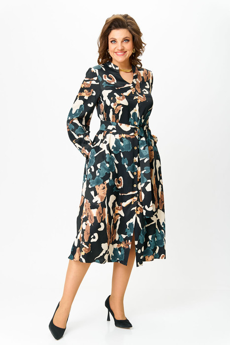 В комплект входит пояс из основной ткани с декоративной пряжкой. Платье без подкладки.