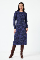 Элегантное платье на запах. Рукав цельнокроенный кимоно. Платье отрезное по линии талии. Силуэт платья - прямой, Оно выполнено из плотного атласа, благодаря чему, оно красиво струится и развивается при хотьбе. Длина платья - 132 см.