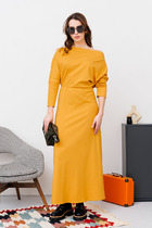 Платье шифоновое А-образного силуэта. Рукав длинный вверху и внизу на резинке. Горловина обработана планкой с резинкой. На талии кулиса с завязками по бокам. Платье на подкладке.