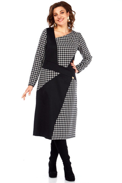 Это платье — манифест графического минимализма и интеллектуальной моды. Оно смело переосмысливает классику, превращая узнаваемый принт "гусиная лапка" в основу для футуристической, но при этом невероятно элегантной композиции.