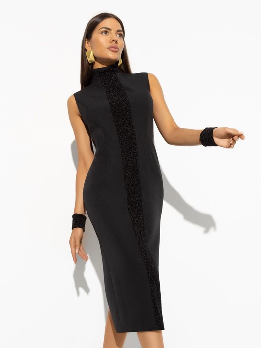Чувствовать каждое мгновение, значит ценить жизнь. Не воспринимайте новый день, как должное. Это праздник! Выбирайте соответствующий наряд. Платье CHARUTTI для мудрых и роскошных женщин. Платье в длине миди приталенного силуэта. Воротник-стойка. Центральная линия из акцентного материала с блеском вшита. В комплекте съемные манжеты. Платье застегивается на скрытую молнию по спинке изделия. Есть разрез сзади по шву.