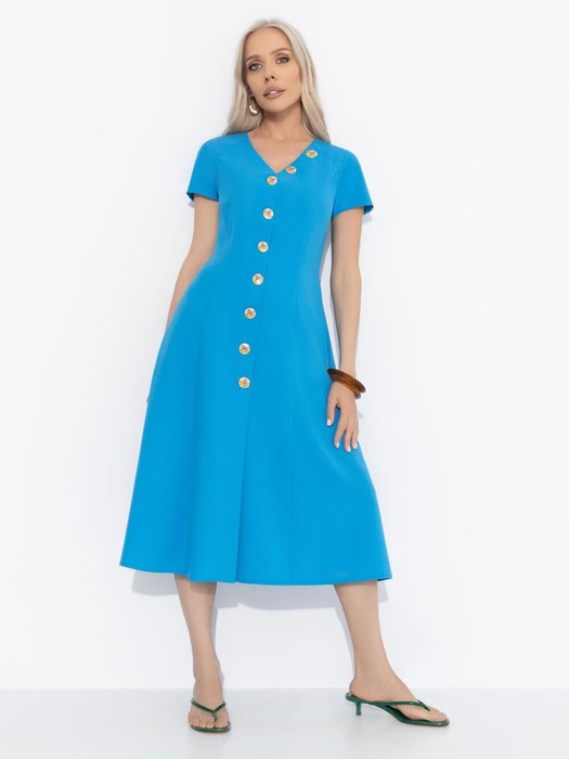 Платье CHARUTTI выглядит, как приглашение пойти на свидание. Женственное и элегантное, оно характеризует вас как порядочную и статную особу. Образ CHARUTTI, в который влюбляешься. Платье приталенного силуэта в длине миди. Акцентные пуговицы изделия. Есть деликатный разрез спереди по линии пуговиц. Платье с карманами.