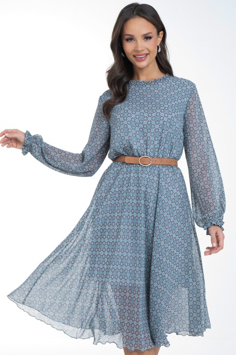 Восхищайте и удивляйте! Элегантное  шифоновое платье, подчеркивающее женственность - отличное решение на каждый день или на праздник для современной стильной женщины. Шикарная модель с пышными красивыми рукавами выполнена из высококачественного шифона с дизайнерским принтом. Очаровательное свободное платье с юбкой полу-солнце создаст нежный воздушный образ! Круглая горловина оформлена рюшей с застежкой на пуговицу на спине. Платье имеет идеальную посадку благодаря индивидуальной корректировки длины за счет мягкой комфортной резинки на талии. По переду сделаны вытачки на грудь. Платье отрезное по талии. Рукава втачные длинные, снизу подогнуты и сосборены на резинку. Платье с подкладом, притачным по горловине и пройме. Поставляется без ремня в комплекте, ремень на фото как пример образа.