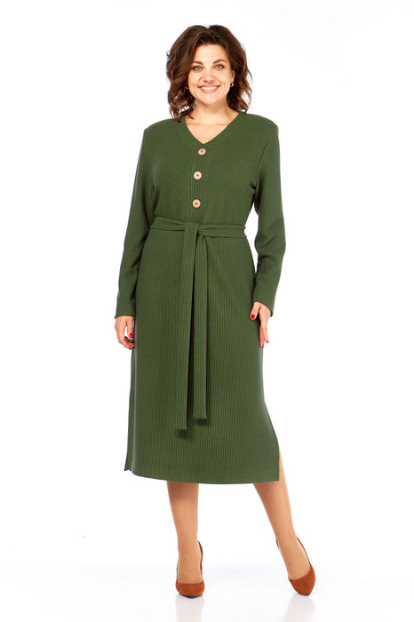 Образ, который поможет создать гармоничный и стильный внешний вид. Удобное платье полуприлегающего силуэта из трикотажного полотна, эффектно подчеркнет линии фигуры. По центру до уровня талии, пришивные декоративные пуговицы. V-образный вырез делает акцент на грудь. Рукав втачной. В боковых швах предусмотрены разрезы. В комплекте прилагается съемный пояс из основной ткани.