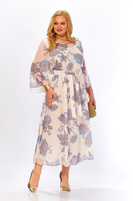 Совместные покупки Нижневартовск Женская одежда Платья — Платье Элль стиль 2470 бежевый, голубой принт