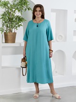 Красивое платье приталенного силуэта. Округлая горловина на внутренней обтачке, по спинке разрез - капелька с застежкой на петлю и пуговицу. Втачной рукав 3/4, оканчивается притачной манжетой. Модель отрезная по линии талии. По талии проложена эластичная резинка, что дополнительно подчеркнет Ваш силуэт. Пояс - кушак из основного материала в комплекте.