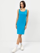 Платье выполнено из плательной ткани с принтом. Платье Х-образного силуэта, отрезное по линии талии, длиной миди. Перед лифа со средним швом и декоративным отверстием в форме круга со сборкой от него. Застежка на потайную молнию в среднем шве спинки. Горловина округлой формы. Юбка расширена к низу. Переднее и заднее полотнища юбки  со средним швом. В боковых швах карманы. В комплект входит съемный ремень с обтяжной пряжкой.