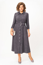 Платье выполнено из плательной ткани. Платье Х-образного силуэта, длиной миди, отрезное по линии талии. Горловина V-образной формы с завязками. На спинке в среднем шве застежка на потайную молнию. Плечевой шов укорочен. Рукав втачного покроя, одношовный, длиной 3/4 с вытачками по окату. Рукав расширен к низу, присборен на эластичную тесьму. Юбка расширена к низу. На заднем полотнище средний шов. В левом боковом шве обработан разрез.