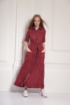 Платье выполнено из трикотажного полотна в рубчик. Платье приталенного силуэта. На спинке средний шов с разрезом. Горловина округлой формы. Плечевой шов заужен.