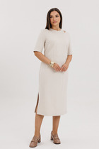 Vilatte Эластичное платье тонкой жаккардовой вязки D32.101 пудровый
