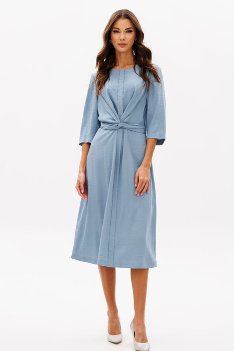 Каждая новая весна вызывает острое желание что-то менять и стремиться к новым горизонтам, как же здесь обойтись без нового платья. Эффектный голубой цвет небесной лазури, особое внимание к мелочам, а главное-индивидуальности и свобода самовыражения через стиль! Вот основная идея этого платья. Полуприлегающий силуэт, втачной покрой, отрезной лиф и слегка коническая юбка. Лиф полочки с центральной отделочной планкой, складкой-драпировкой, переходящей в цельнокроенный пояс. Рукав втачной, длиной.... Спинка со средним швом и застежкой каплей и эластичной тесьмой.
