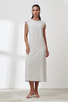 Овальная горловина, аккуратно обтачанная подкладкой, придаёт образу мягкость и женственность.
