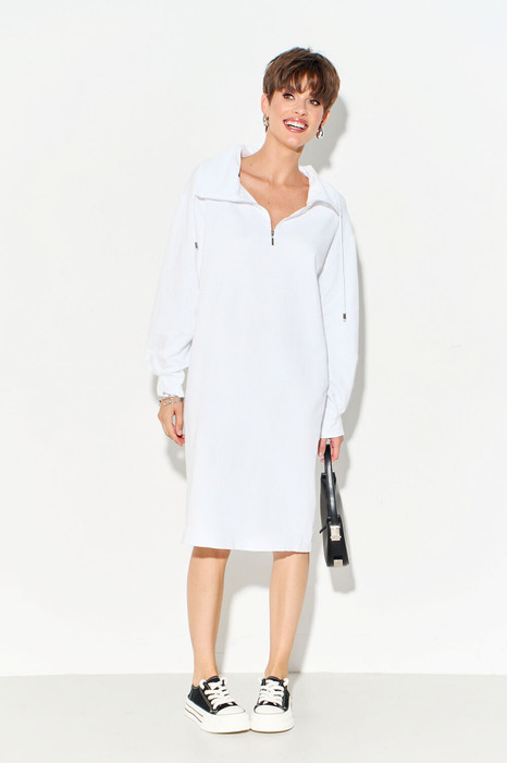 Стильное женское платье полуприлегающего силуэта выполнено из мягкого трикотажа футер 2-х нитка класс "пенье". Рукава со спущенной линией плеча и манжетой с небольшими мягкими складками; высокий воротник и застёжка-молния по переду. Изделие  полностью соответсвтует заявленному размеру. Пожалуйста, пользуйтесь таблицей обмеров готового изделия.