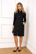 Платье женское прямого силуэта, длиной до середины колена. Рукав рубашечного покроя, длинный. Линия плеча немного спущена. Платье выполнено из трикотажного мягкого полотна, с хорошей растяжимостью.Членения спинки и переда ассиметричные. Горловины круглая, обработана узкой бейкой. В нижней части переда слева расположено пришивное украшение— апликация.