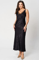 Платье женское трикотажное, полуприлегающего силуэта.По переду рельефе обработан разрез. Спинка с рельефами идущими от плеча и выточками по линии талии. Горловина лодочка. Рукав 3/4 со спущенной линией плеча.