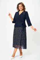Платье женское отрезное по линии талии, льняное. Перёд с нагрудными вытачками идущими с боковых швов. На верхней части переда расположена декоративная вышивка. Горловина круглой формы. Спинка со средним швом, в которой расположена застёжка горловины на одну пуговицу. Нижняя часть платья собрана на сборку. Рукава одношовные, короткие, гладкие.