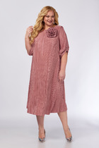 Платье женское прямого силуэта изготовлено из трикотажного полотна ажурной вязки. Рукав втачной,длинный.  В боковых швах имеются разрезы.