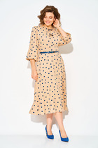 Платье прямого силуэта из бархата. В боковом шве разрез. Рукав втачной одношовный. По спинке застежка капелька на петлю и пуговицу. Длина платья - 136 см, длина рукава - 66 см.