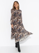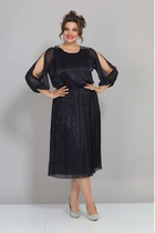 Платье с застежкой на потайную молнию в среднем шве спинки, без воротника, с круглым вырезом горловины. По переду с нагрудными вытачками. Спинка со средним швом, талиевыми вытачками. Рукав втачной, длинный, расширенный к низу.