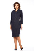 Платье полуприлегающего силуэта, с застежкой на потайную молнию в левом боковом шве, без воротника, с круглым вырезом горловины, отрезное по линии талии . Шов по талии присборен на резинку. Лиф переда с нагрудными и талиевыми вытачками. Спинка с талиевыми вытачками. Нижняя часть переда расклешенная к низу, с гофрировкой. Рукав втачной, длинный. Платье с декоративным поясом. По боковым швам расположены шлевки для пояса.