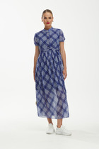 Платье полуприлегающего силуэта, с застежкой на потайную молнию в среднем шве спинки, без воротника, без рукавов, отрезное по линии талии . Лиф переда и спинки с рельефами от верхнего края до талиевого шва, . Спинка со средним швом. Рельефные швы лифа усилены регилином .Нижняя часть переда с двумя асимметричными деталями. Верхняя деталь с четырьмя односторонними складками, выходящими из бокового шва .