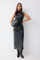 Платье с центральной застежкой на петли и пуговицы, втачным воротником с отрезной стойкой. По переду с клапанами. Спинка с отрезной кокеткой, переходящей на перед. Платье двойное. Нижнее платье на бретелях, с нагрудными вытачками по переду. Платье со съемным поясом.
