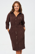 Платье, с застежкой на потайную молнию по среднему шву спинки, без воротника, с фигурным вырезом горловины. Платье отрезное по линии талии. Нижняя часть платья состоит из двух воланов. Лиф переда с рельефами, выходящими из горловины. Лиф спинки со средним швом, рельефами, выходящими из горловины. Рукав втачной, длинный, с отрезной манжетой. Окат и шов притачивания манжеты присборен. Платье со съемным поясом.