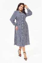 Платье с центральной застежкой на петли и пуговицы, втачным воротником с отрезной стойкой. По переду- накладные карманы с клапанами расположенные на уровне груди. Накладные карманы с цельнокроенной патой расположены на уровне бедер. Спинка со средним швом. Пата рукава переходящая в погон по плечевым швам. Платье со съемным поясом.