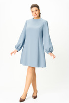 Платье свободного А-образного силуэта, изготовлено из трикотажа. Горловина с воротником-хомут. Рукав спущенный, длинный. Изделие без застежки, декором является вышивка по переду.