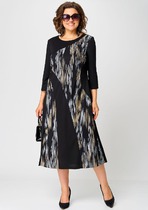 Платье женское, полуприлегающего силуэта.  Вырез горловины со стойкой и застежкой на тесьму-молнию. Рукав втачной, длинный. По спинке разрез в среднем шве. В комплекте съемный пояс из основной и декоративной ткани.