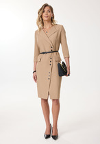Женское летнее платье полуприлегающего силуэта со втачными рукавами и небольшой сборкой по линии талии выполнено из легкой непросвечивающейся натуральной ткани. Юбка платья на запах с подъюбником из основной ткани. В комплекте съемный пояс.