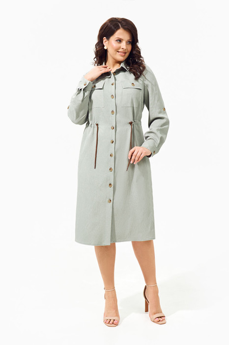Платье-рубашка полуприлегающего силуэта выполнено из натуральной ткани (вискоза). Платье свободного силуэта со втачными рукавами, внутренней патой и манжетой, что позволяет регулировать высоту рукава и представляет собой стильную деталь с изысканным акцентом; воротник рубашечный; по переду накладные карманы и функциональная кулиса по линии талии с декоративным шнуром-завязкой; застежка на петли и пуговицы. Платье соответсвует заявленному размеру.