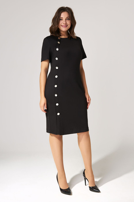 Платье женское прилегающего силуэта, выполнено из трикотажного полотна средней плотности, рукава втачные, по переду планка, застежка на петли и пуговицы.