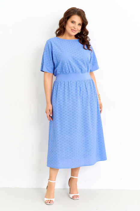 Женское платье свободного силуэта на подкладке выполнено из натуральной хлопковой ткани решелье. Платье с цельнокроеными рукавами, отрезное по линии талии, по спинке вставка из вискозы полностью на резинке, юбка платья на хлопковой подкладке, застежка по спинке на петлю и пуговицу. Платье полностью соответсвует заявленному размеру. Пользуйтесь таблицей замеров готового изделия.