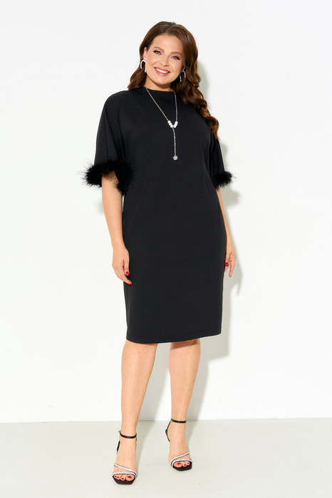 Платье полуприлегающего силуэта, по спинке застежка-молния; по низу рукавов декоративное натуральное съёмное боа (крепится на петли и пуговицы). Платье полностью соответствует заявленному размеру . Пожалуйста, пользуйтесь таблицей замеров готового изделия.