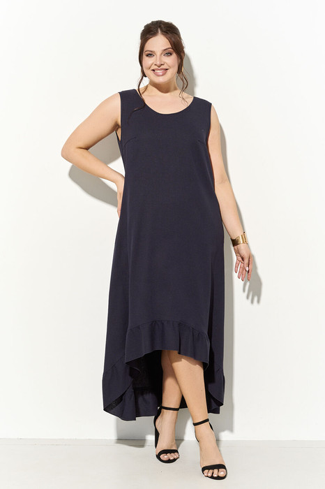 Женское платье А-силуэта выполнено из натурального льняного полотна с карманами в боковых швах; линия низа ассиметричной формы с присборенным воланом. Платье полностью соответсвтует заявленному размеру. Пользуйтесь таблицей замеров готового изделия.