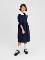 Платье для девочки А-образного силуэта, средней длины, с длинными втачными рукавами, с круглым вырезом горловины, отрезное по линии талии. Перед расшит пайетками. Юбка платья двухслойная, верхний слой юбки из сетки присборен.