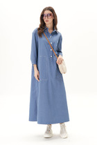 Платье из комфортного трикотажного полотна меланж прямого  силуэта. Горловина оформлена воротником-хомут. Линия проймы спущена. Рукав длинный.