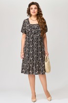 Платье женское А — силуэта, выполнено из неплотной плательной ткани. Воротник стояче — отложной с отрезной стойкой. Застежка центральная с притачной планкой на петли и пуговицы. По переду нагрудный накладной карман, с отделочной планкой из довяза. Спинка со средним швом. Рукава втачные, одношовные, длинные по низу присобраны на декоративный довяз. В боковых швах обработаны карманы. Имеется пояс из основной ткани с декоративной пряжкой.