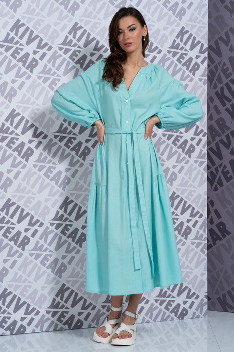 Платье застегивается на ряд пуговиц, расположенных по всей длине передней части, что обеспечивает идеальную посадку на любой фигуре. Дополняет образ стильный пояс из той же ткани, который подчеркивает талию и придает силуэту женственность и элегантность.