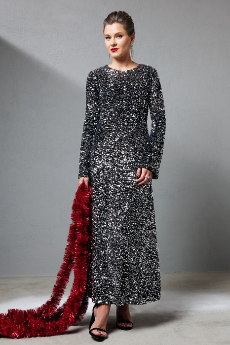 Роскошное платье в пол. Платье выполнено из бархата на который нашиты сверкающие пайетки. Застежка по спинке на потайную молнию. Длина платья - 134 см.