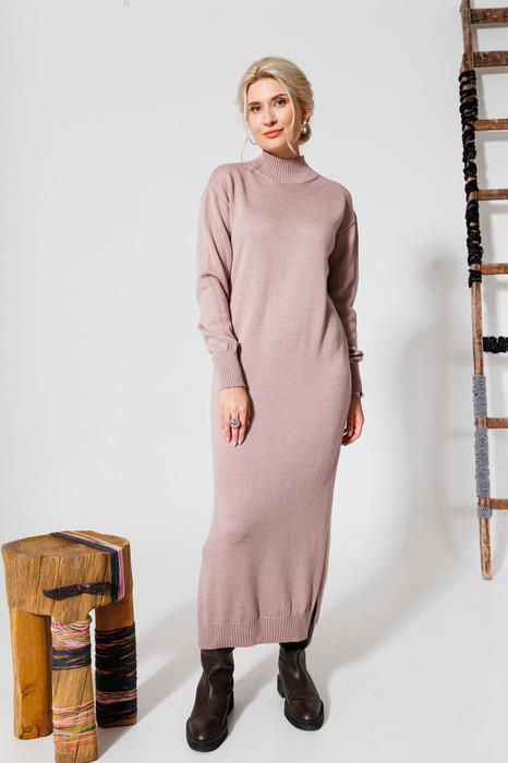 Стильное трикотажное платье прямого силуэта. Длина - в пол. Воротник стойка. По боковым швам внизу имеются высокие разрезы для удобства носки. Силуэт платья - свободный, поэтому оно отлично скрывает все недостатки фигуры. В этом платье вы станете примером хорошего вкуса и чувства стиля, трендовая длина и  силуэт не потребуют от вас никаких дополнительных усилий для создания неповторимого образа. Платье выполнено из итальянской пряжи, с энзимной обработкой, благодаря этому оно не колется и очень приятное на ощупь.