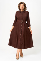 Спинка с цельнокроеным укороченным рукавом «летучая мышь» имеет средний шов, в котором расположен у горловины разрез с пуговицей-застежкой. Юбка платья А-силуэта, состоящая из цельной детали спереди, сзади: средний шов. В боковых швах платья: внутренние карманы. Лиф платья с юбкой платья соединен швом, в который вставлена эластичная тесьма шириной 1 см. Юбка платья на подкладке. Длина платья по среднему шву спинки 113-115см (в зависимости от размерного ряда). Длина юбки платья от линии талии 78-82 см. Платье дополнено съемным текстильным поясом на пряжке.