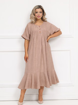 Повседневно-нарядное женское платье прямого силуэта, выполнено из двух видов ткани: плательно-костюмного материала и шифона. Вырез горловины овальный, обработан обтачкой. По полочке нагрудные вытачки. Рукав втачной одношовный, спинка со средним швом и потайной молнией. Низ изделия ассиметричный из шифона на трикотажной подкладке. Платье отлично смотрится как с ремнём, так и без него. Ремень в комплект не входит.