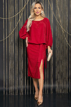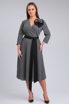 Повседневно-нарядное женское платье прямого силуэта, выполнено из двух видов ткани: плательно-костюмного материала и шифона. Вырез горловины овальный, обработан обтачкой. По полочке нагрудные вытачки. Рукав втачной одношовный, спинка со средним швом и потайной молнией. Низ изделия ассиметричный из шифона на трикотажной подкладке. Платье отлично смотрится как с ремнём, так и без него. Ремень в комплект не входит.
