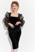 Платье с фигурным вырезом горловины и на бретелях (бретели регулируемые).