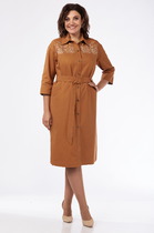 Платье длины миди со свободной юбкой и пришивным по переду поясом. Рукав цельнокроеный. По спинке встречные складки и застёжка по линии горловины на пуговицу. Длина по спинке 125 см